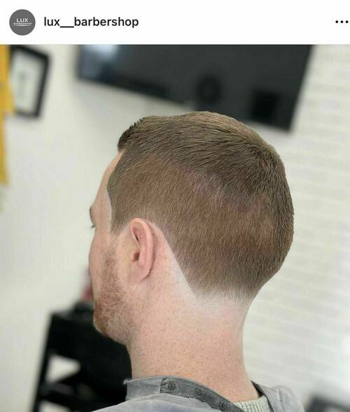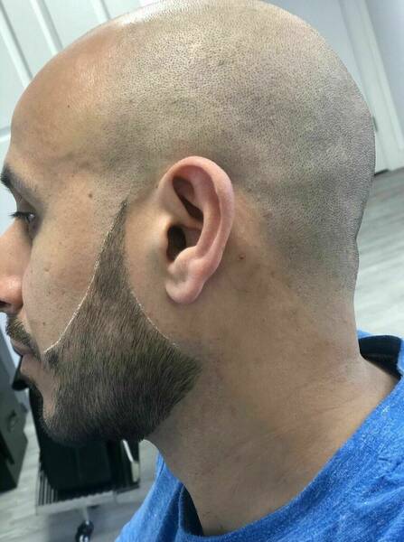 This service is for a bald fade graduated up into longer hair . Hair is taken down to skin using foil shaver.